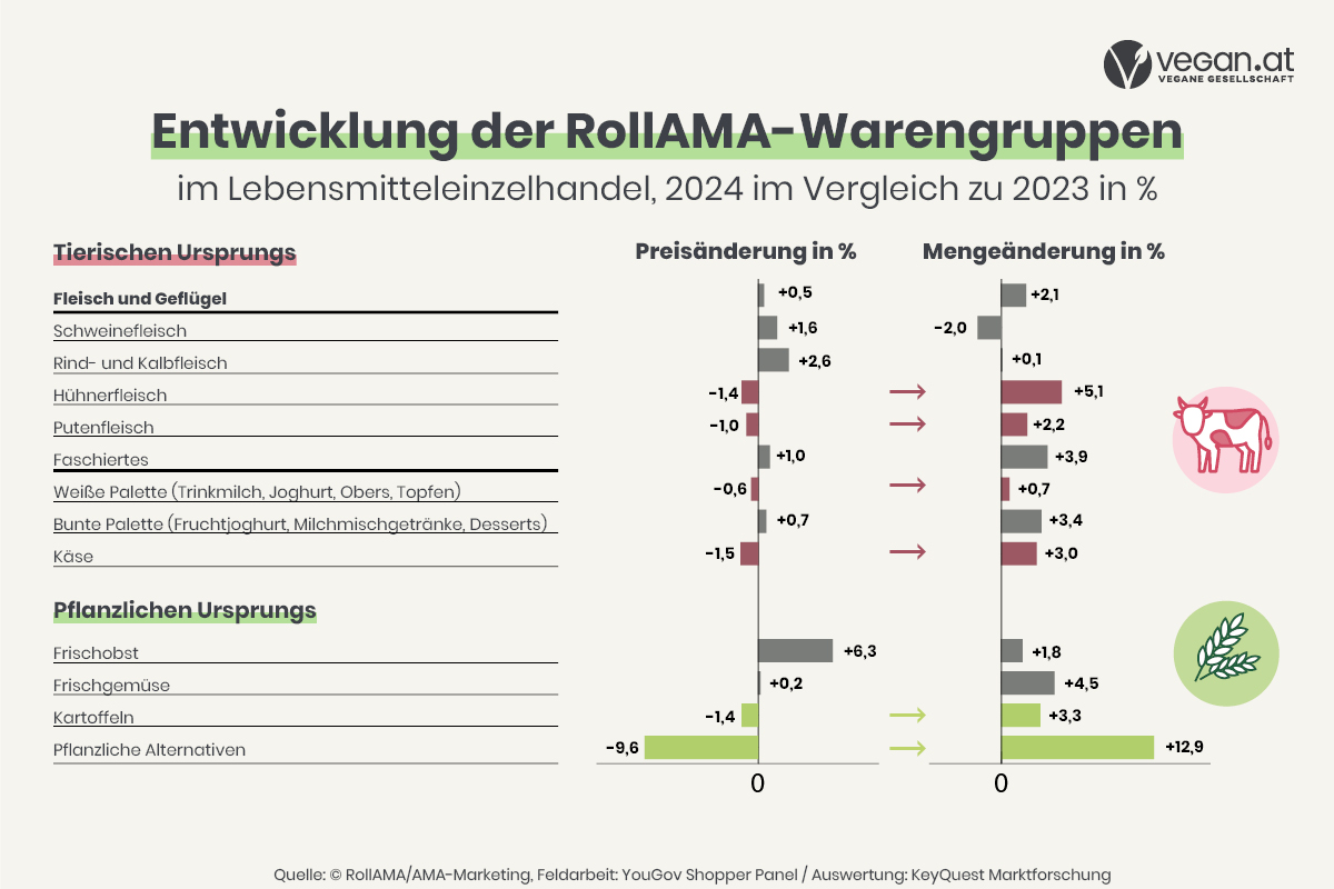 Die Daten der Statistik Austria zeigen eindeutig: Die kurzfristigen Effekte durch die Preisentwicklung von tierischen Produkten, die gesteigerte Geflügelproduktion oder der Tourismus können kleine Schwankungen im Fleischkonsum erklären, sie ändern jedoch nicht den übergeordneten Trend. Parallel wächst der Markt für pflanzliche Produkte weiterhin stark.
