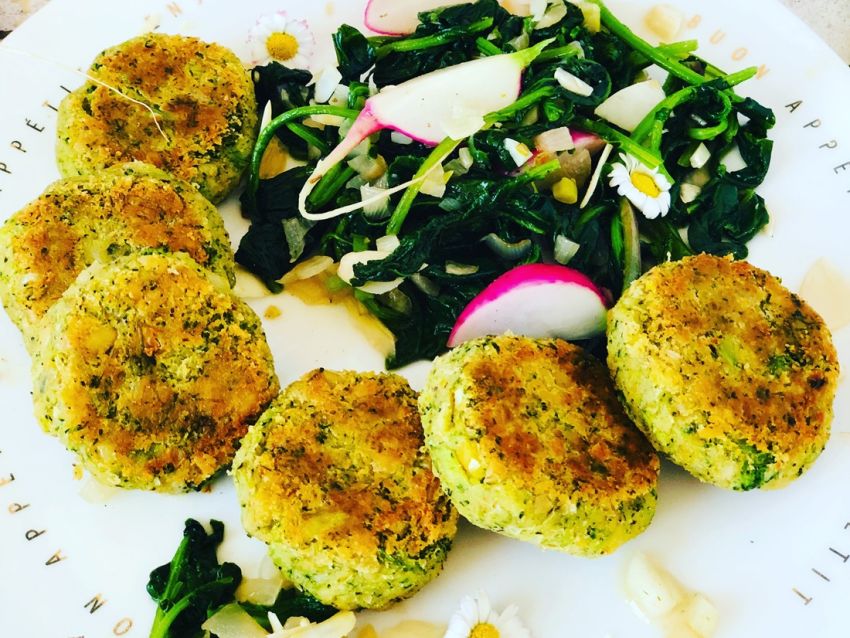 - Kichererbsen mit zerdrückter Knoblauchzehe und Brokkoli mit einem Pürierstab zerkleinern - es darf noch etwas stückig sein.