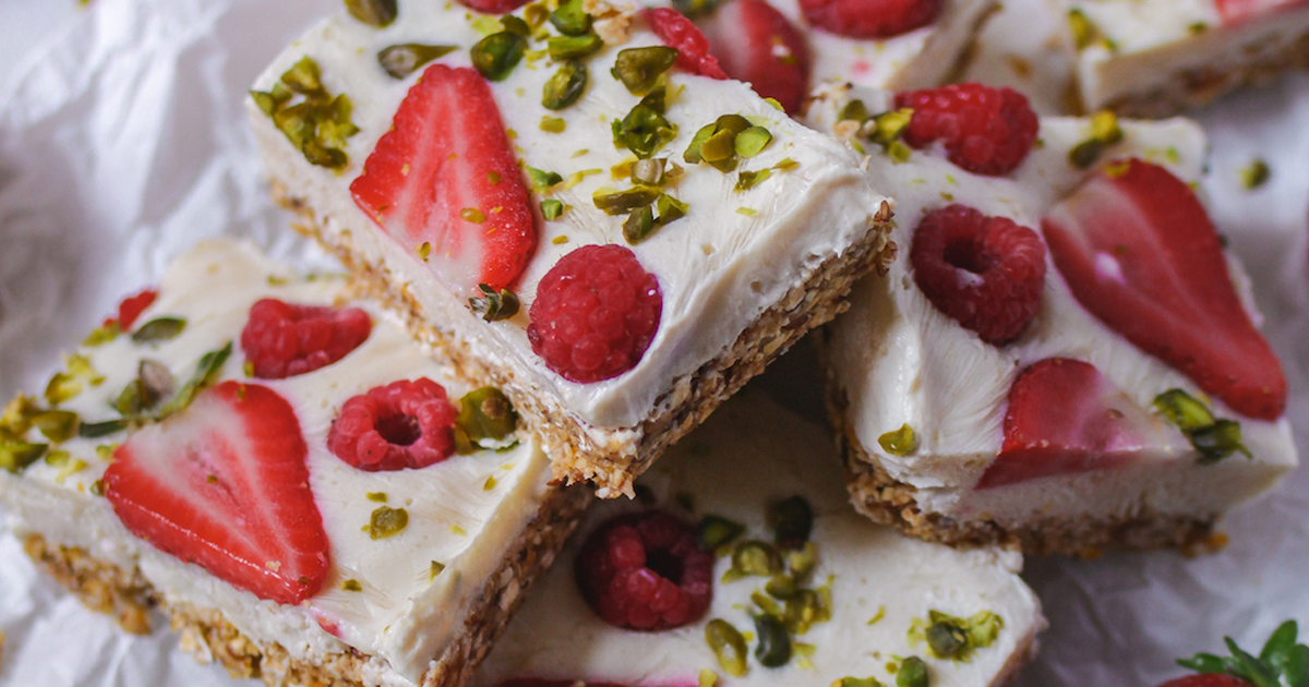 6. Die veganen Joghurt-Schnitten mindestens 3-4 Stunden in den Tiefkühler stellen.